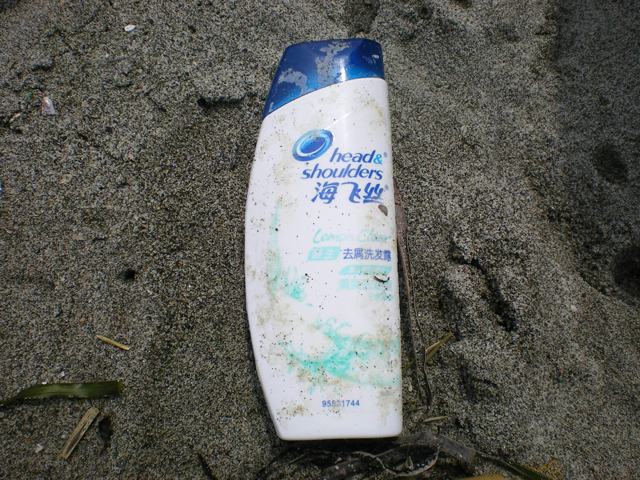 浜には海外製品と思われるゴミもありました。